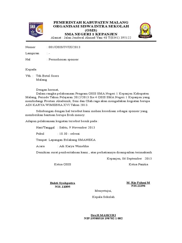 Contoh Surat Kerjasama Sponsorship Yang Baik Dan Benar Suratkerja Com